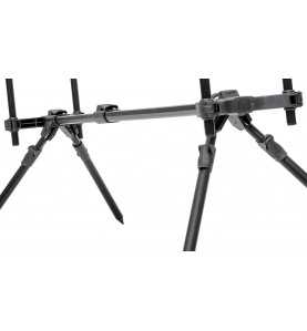 4 výškovo nastaviteľné teleskopické nohy s možnosťou posunu po hlavnej stredovej konštrukcii pre ideálne nastavenie sklonu prútov a prispôsobenie sa nerovnému terénu. Výškovo nastaviteľné hrazdy s ľahkým systémom skladania, nastaviteľná dĺžka stojana. Stojan je vyrobený z odľahčenej, ale napriek tomu veľmi pevné zliatiny. Dodávané s transportným obalom.