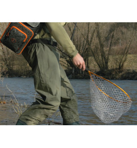 Profesionálny podberák s pevným kovovým rámom a extra mäkkou transparentnou sieťkou, navrhnutý špeciálne pre priaznivcov lovu lososovitých rýb a vyznávačov lovu chyť a pusť.